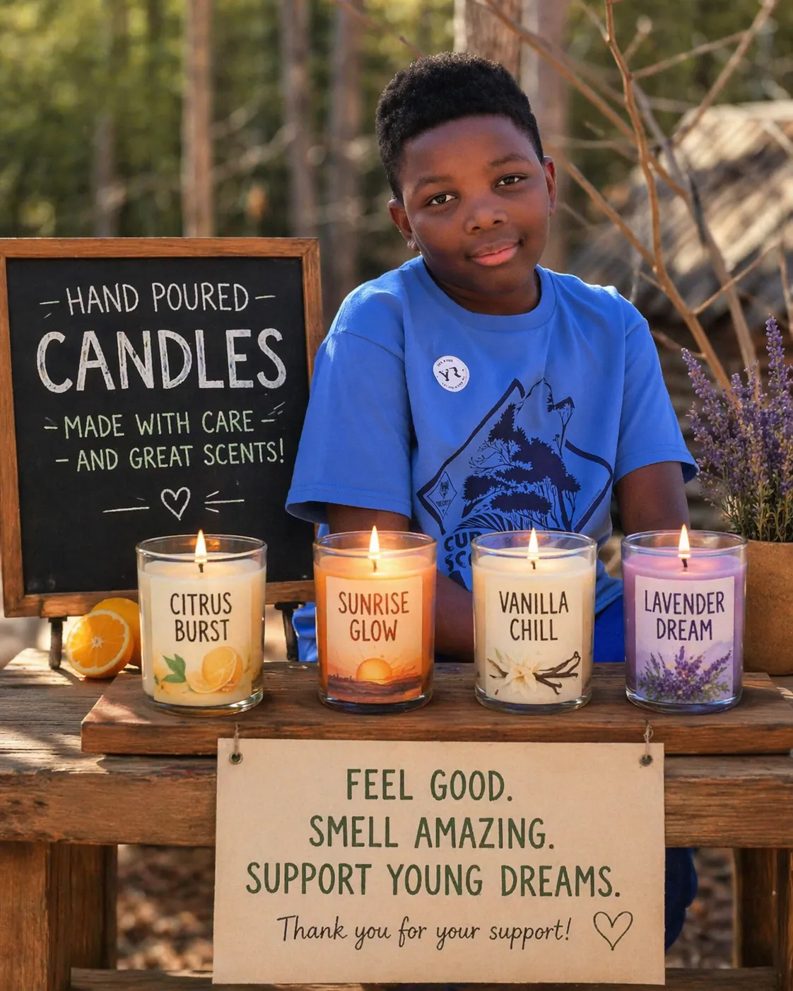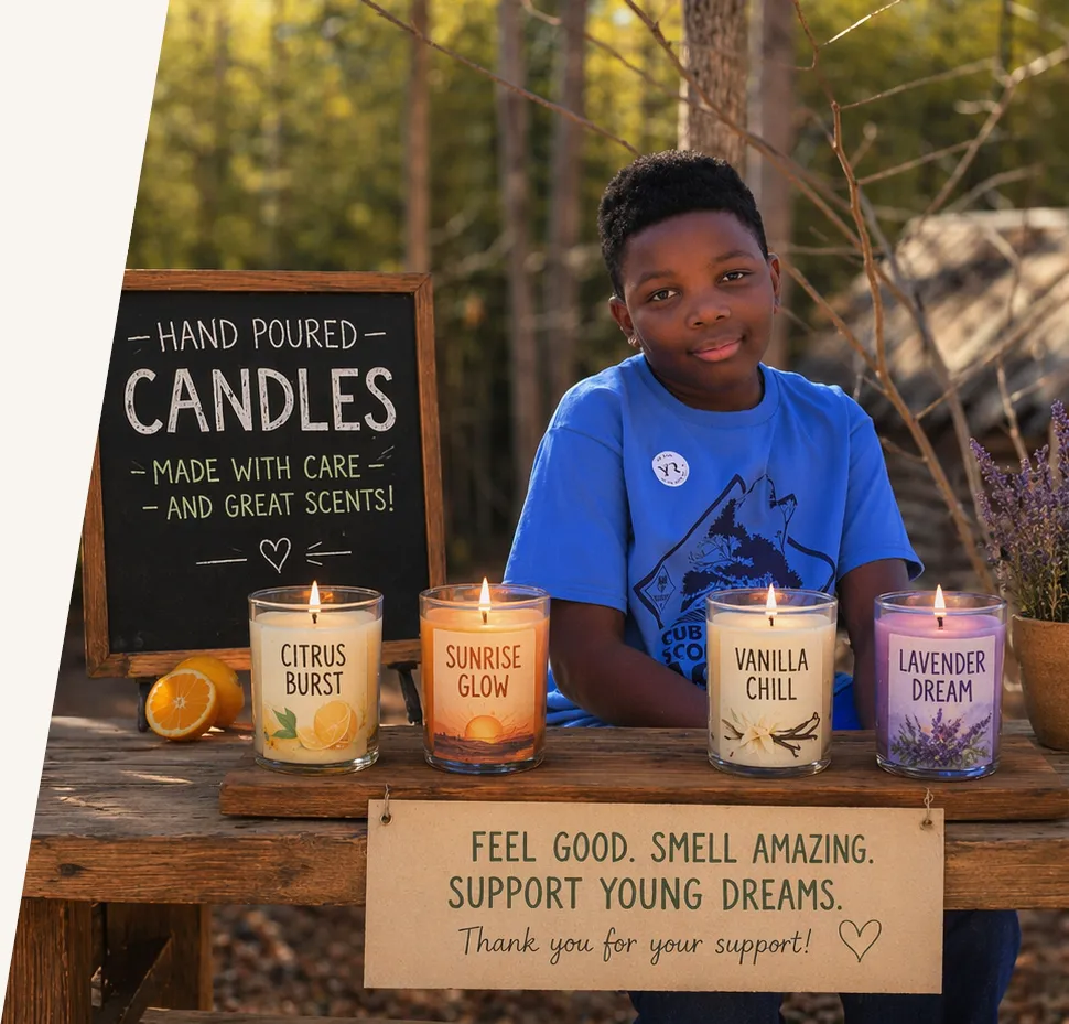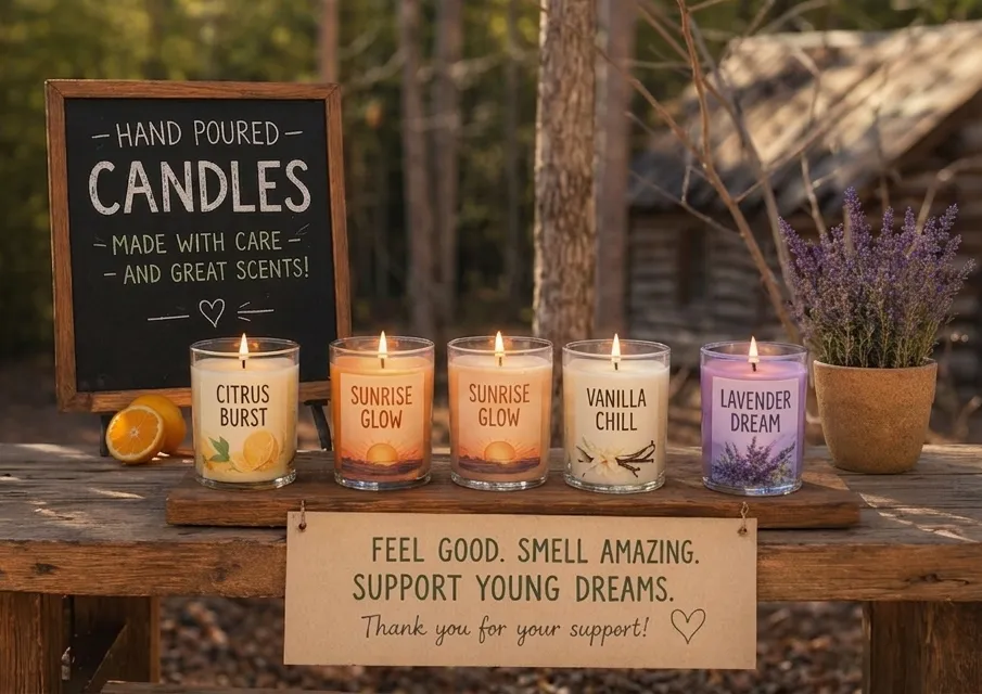 Each candle is handmade to help people relax, enjoy their space, and give meaningful gifts. Every purchase supports my journey as a young entrepreneur.
